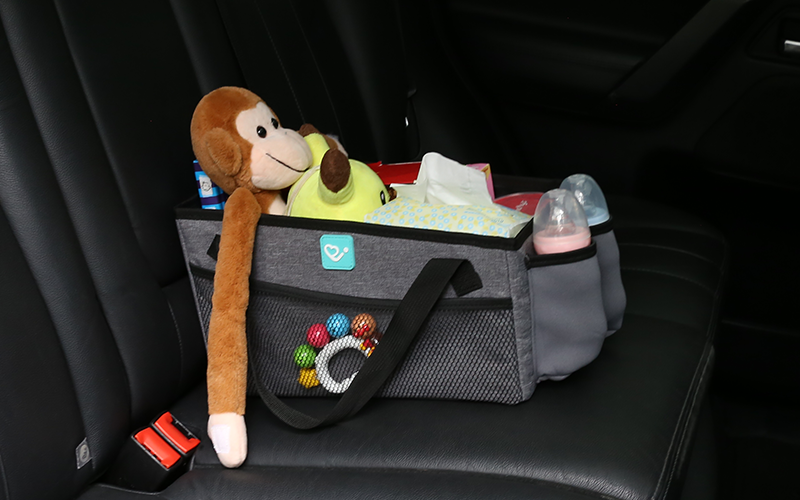 | Features | . Keeps toys, books and smaller items neat and tidy . Fits between two child car seats with enough space to hold everything for both children . Sturdy loops make it easy and safe to secure in your vehicle . Easy to fold, easy to carry |