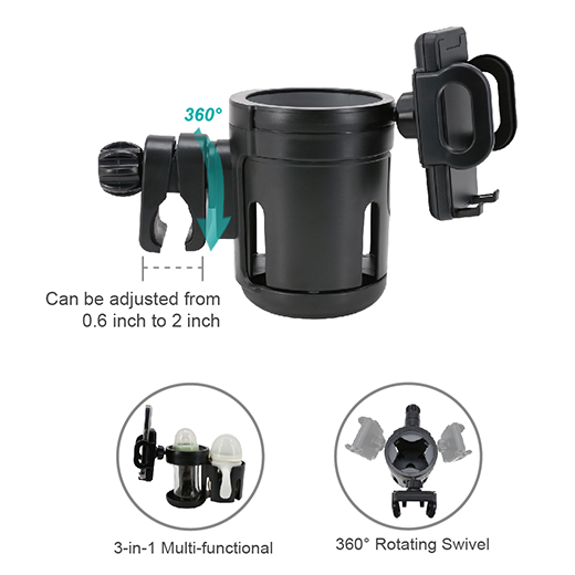 | Features | . Multfunctional and wide range of use: Our holder can accommodate cups, bottles, mobile phones. . Hassle-Free Installation: No tools needed! This holder features quick and effortless setup, so you can spend less time assembling and more time enjoying your stroll. . Sturdy, Anislip and Secure: Designed with your peace of mind in mind, our holder features padded damps to prevent slipping and sliding, ensuring your items stay securelyin place. .With 360-degree rotation capabilty, you can adjust the angle to suit your needs perfectly. |