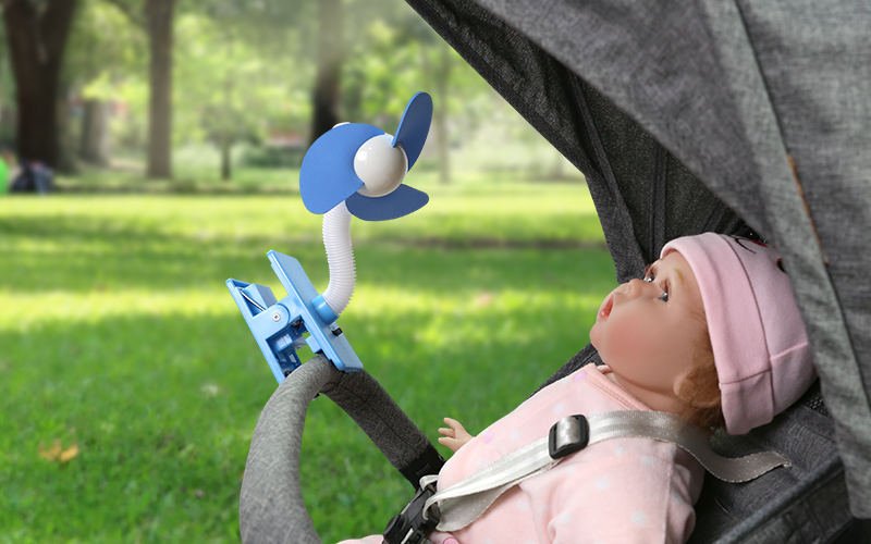 | Features | . The Universal Stroller Fan keeps your baby cool and comfortable on hot days. . The fan has harmless, baby-safe soft foam fins. . The Fan has a flexible neck that allows you to position the fan in any direction. . The spring-loaded clip houses the battery pack (2 x AA batteries required not include) that powers the fan. . The clip can easily be attached to any stroller bar, cot rails, and playpen. |