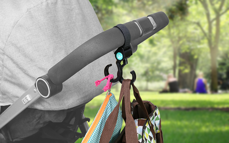 | Features | . Material: environmental friendly ABS, dense nylon weave and super adhesion Velcro. . 360 degree rotation for super convenience, easy install and remove. . Swivel hook can lock your cargo to avoid drop off . suitable with most type of strollers. . Safety all your demand in one time and free your hands. . Could be hung on the stroller, car seat, crib, bike, wall to use it as a normal hook. |