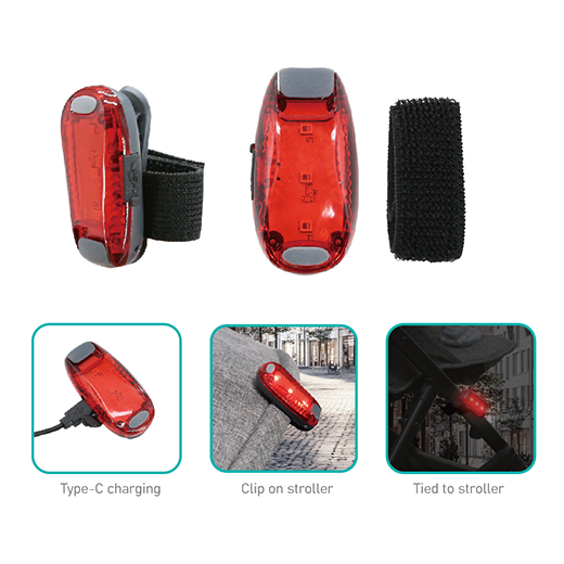 | Features | . Velcro installation for easy mounting. . Suitable for a wide range of multi-scene applications. . Compact and easy to carry in one hand. . Water-resistant for use in rainy weather. . Simple battery replacement process for extended service life. . Dry battery style is also available. . Battery: Rechargeable Battery, 200mAh. . Charging Time: 0.5H. . Usage Time: 6-8H. . Charging Port: Type-C. . Mode: high Brightness/low Brightness/flash. |