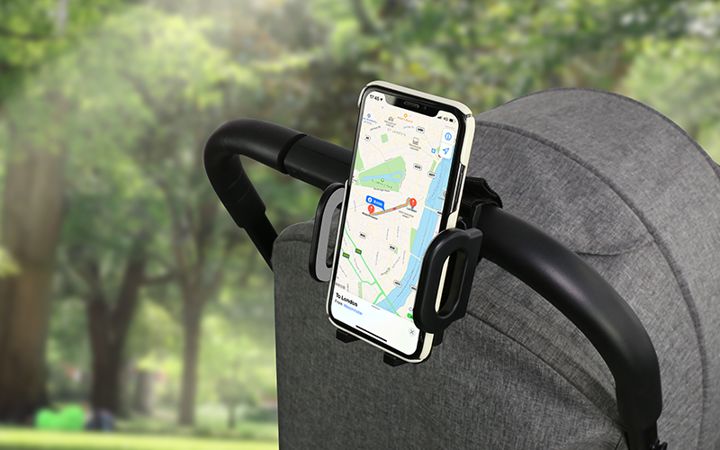 | Features | . Stroller phone holder with adjustable arms and feet can fit all phone sizes. . 360° flexible rotations, easily rotate and adjust to your perfect viewing angle. . Velcro strap makes it super quick and easy to attach to any strollers for your various activities. . Phone holder features adjustable arms which activated by the side securing button. |