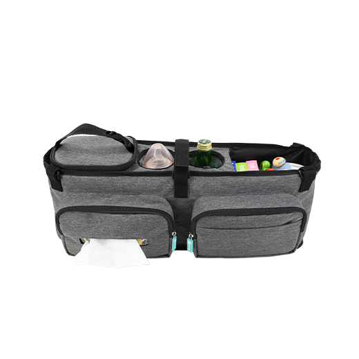 | Features | . Adjusted webbing make it suitable for most wagon. . The wagon organizer comes with an individual cooler bag for baby bottle or drinks. . Large storage space can hold baby diapers, snack, toys, parents’ bottles and other outing essentials. . Wagon caddy equipped with 5 adjustable buckle straps to secure the bag to stroller and keep it in place. |